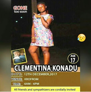 17 year old Clementina Konadu passed away on Tuesday, December, 5, 2017 at the Kwame Nkrumah University of Science and Technology (KNUST) hospital.