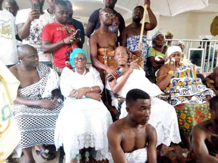 The Omanhene of Asante Akyem Agogo, Nana Kwame Akuoko Sarpong has conferred an honorary chieftaincy title on legendary highlife artiste, Amakye Dede at a colourful ceremony held at Agogo on 1st January, 2018.